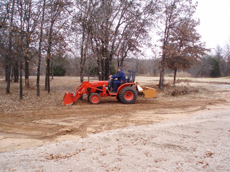 The owner, Jessie Clinton, took care of all the details of my order, and when the carport arrived a couple weeks later, it was everything promised. The crew installed the carport last Friday, and did a great job, but afterward I needed to get a load of gravel for underneath. I called Roger Wilkins Sand and Gravel and within a couple hours I had a load of (15 tons) 'crusher rock' ($176). But shoveling gravel is hard work, Jill and I have both been doing a little shoveling every day, gradually getting the area beneath the carport covered in crusher rock. But the pile was still going to be too large, so I called Russell Martin to bring his Kubota tractor and finish spreading the rock over the driveway area. He'll be here in a couple days to save the day, and our backs.