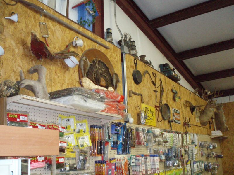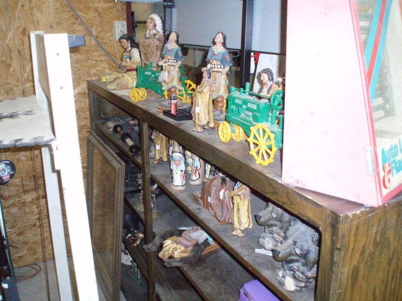 And Jessie has some Indian statues, deer antlers, a mounted deer head, old tools and the like along a couple walls.