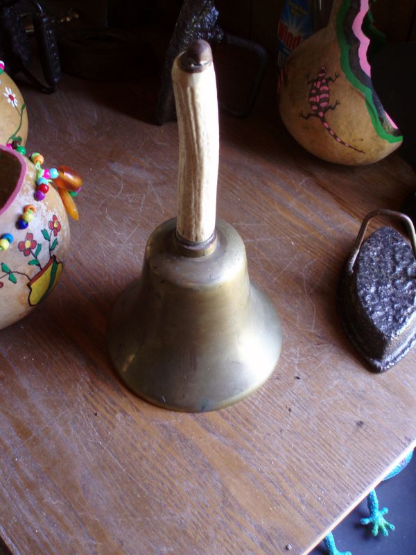 But Bill had me hooked when I saw a heavy brass bell he had for sale. He was told it came from a tug boat down in Texas. You talk about a beautiful ring. The picture doesn't do it justice. The bell is bigger than it looks in the photo, and super thick. Bill attached the deer antler for a handle.