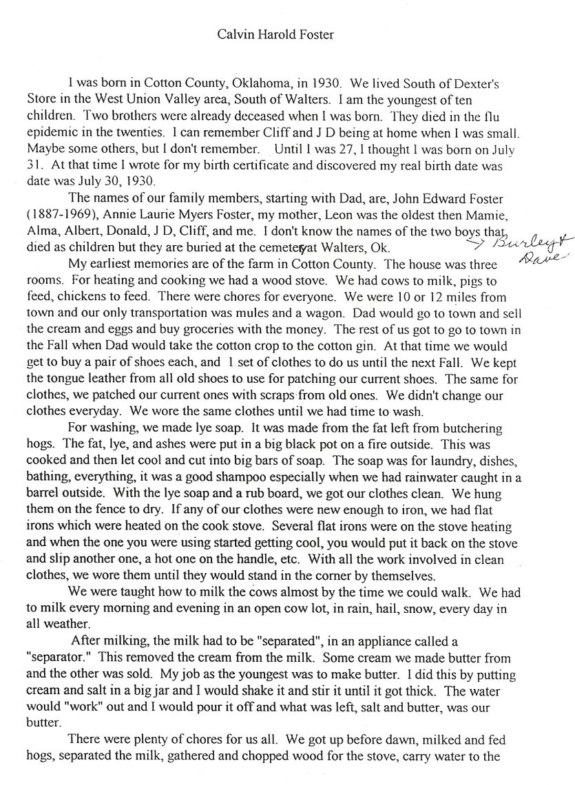 "Jerry Westbury and Wife Nila put together a very interesting article about Calvin H. Foster. Jerry was a former Pastor of the Wirt Baptist Church and former Sec of the Healdton Masonic Lodge in Healdton. Calvin has worked in and around Lone Grove in the chemical business. Reading this article really brings back memories of my early childhood!" -Hoot Gilberthttp://www.oklahomahistory.net/ttphotos8a/CalvinFoster01.jpg