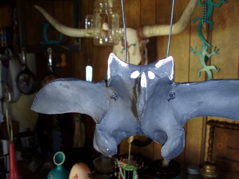 But one of his most unusual works of art were his bats. Bats made from the backbone of a cow. He made over 200 and sold them like hot cakes at Sulphur.