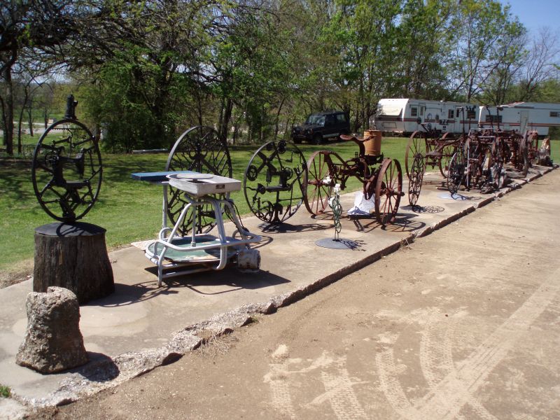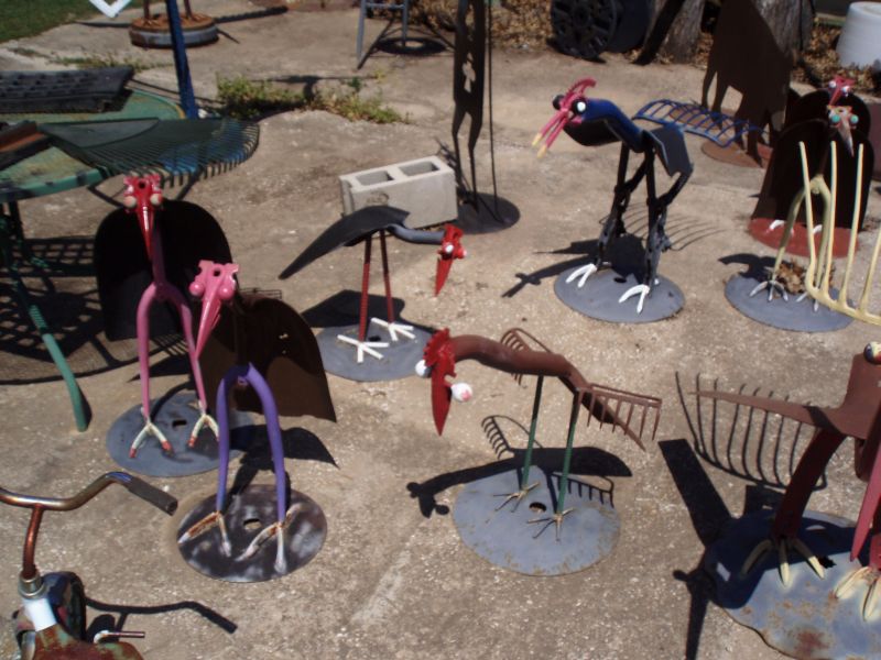 One of the residents we met on the north edge of Bromide was Bill Sandusky. At nearly 80 years young, Bill has many a story to tell about his Bromide. But even more interesting then his stories is his handworks all around his yard. Bill is one heck of a welder and metal worker, and has made 1,000s of unusual and one of a kind pieces of art from all kinds of metals. Below is just a few of the pieces I snapped pictures of.....