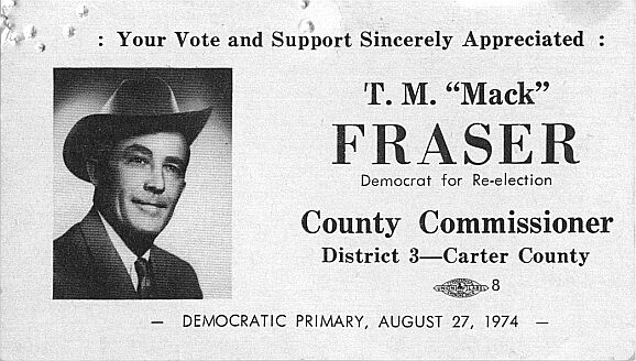 This is a photo of Thomas 'Mack' Fraser from his 1974 county commissioner campaign card.