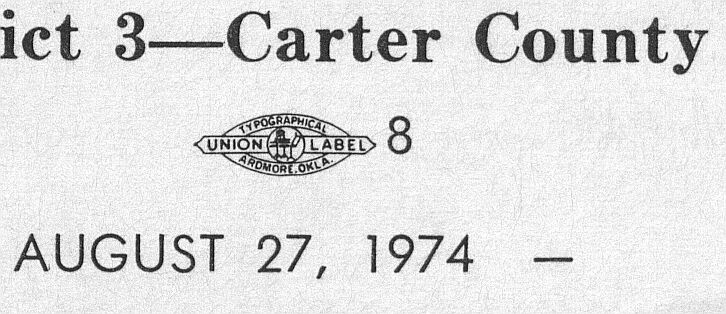 This is Mack's campaign card and one thing I want to point out is that small copyrighted union label with the 8 next to it under the words Carter County. The 8 signified the printers were part of the 2,300 member Union headquarters in St Louis, Missouri. The logo was used by printing companies like Ardmore's Sprekelmeyer Printing back in those days to signify the printers were members of their Union. Back in those days, if you didn't have your campaign materials printed at a "union shop" you were already out on a limb and chances of being elected were slim.