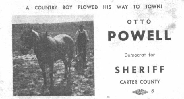 "Hi Butch. I don't recall Otto Powell actually winning an election. He was a "burley" person and I recall the stuff about him being illiterate. I never saw him without a pair of overalls on, blue ones, not the ones with stripes. As I recall, he actually lived a little south of Wilson, "in the country (as if Wilson isn't country?)" and he did "plough his way to town". He wanted to be sheriff, but never made it. I have wondered all of these years what kind of an office holder he would have made."