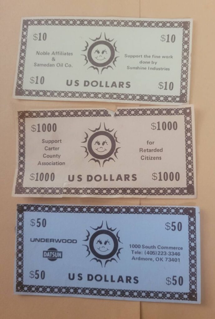 “Sunshine Industries sold a monopoly type game with Ardmore businesses that bought sponsorships for the properties in the 80’s as a fundraiser for the charity. That’s the money from the game. My parents still have a well worn game set.” -Michael Maxwell