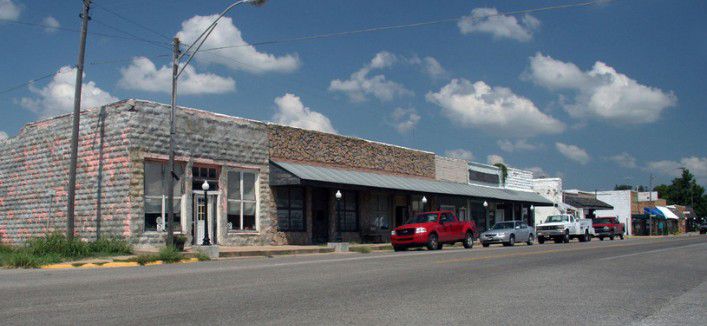 Below is downtown Elmore City. Population 738 in the 2020 Census. The town at one time had a City Ordinance against dancing. Discover the true story that inspired the 1984 movie, “Footloose” in the small town of Elmore City, Oklahoma