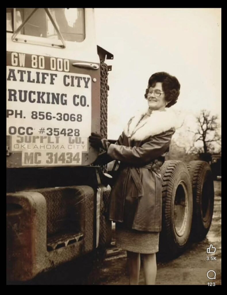 I posted the photo below of a lady standing beside a truck on my Facebook, asking if anyone knew who the lady was in the picture. Within an hour I had the answer. It was Hamp Baker‘s sister, Dimples Varnell. Hamp Baker in 1974, took on a significant role as an Oklahoma Corporation Commissioner, serving with distinction until 1985. His tenure was highlighted by his impactful public safety campaign, “Hamp Baker says Drive with Care,” one of the most recognized slogans of the 1970s.