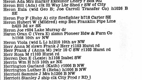 "Hi Butch! Was funny when the discussion began a few weeks ago in the T & T about the neighborhood grocery stores as I had just been thinking about that very thing and going over in my mind all the little stores I could remember and most of them have been mentioned. There are two, however, that haven't been mentioned. The first was the store at 718 B N. W. W. T. (Bill) and Julia Shannon sold their grocery store in Ringling in 1945-46 and bought this property which had the Martin grocery on it, tore down the old building and built a brand new concrete block building at the 718 B N. W. location and then across a wide driveway built their new home at 720 B N. W. Shannon Grocery had a fresh meat market as well as sandwich meats, cheeses, etc. and delicious homemade chili. It was a full grocery and most of their business was done on credit as were most of the stores of the time. The Shannon's operated this store until the mid fifties when they sold to Eddie and Thera Elles. I grew up in this store as the Shannon's were my sister's in-law's and I have many fond memories of them letting me run the manual adding machine, gather up my own candy etc. Wanted to fill in this piece of history between the Martin's Grocery and Elles Food Mart. There was another little store in my neighborhood on the northwest corner of 9th and A N. W. that was owned by Nannie Williams that brings back a lot of memories. It was an old frame building built so that the front of the store faced right to the corner....unusual, especially for that day of the late 40's, early 50's. Wood floors that creaked and of course, a screen door that squeaked. Enjoy the T & T so much, it's the highlight of the week. Thanks for the memories....keep up the good work." -Ruth Ann McCollum