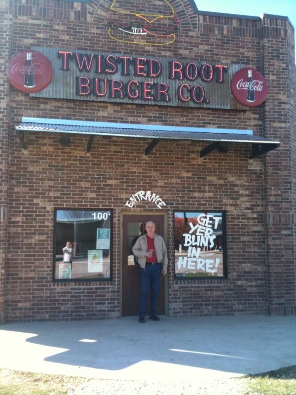 "Hi Butch, I had lunch today at Twisted Burger in Roanoke, TX. Had a buffalo burger, forgot to get a pix of it, but very good." -Jerry Landrumhttp://www.oklahomahistory.net/ttphotos9a/TwistedRootBurger09.jpg